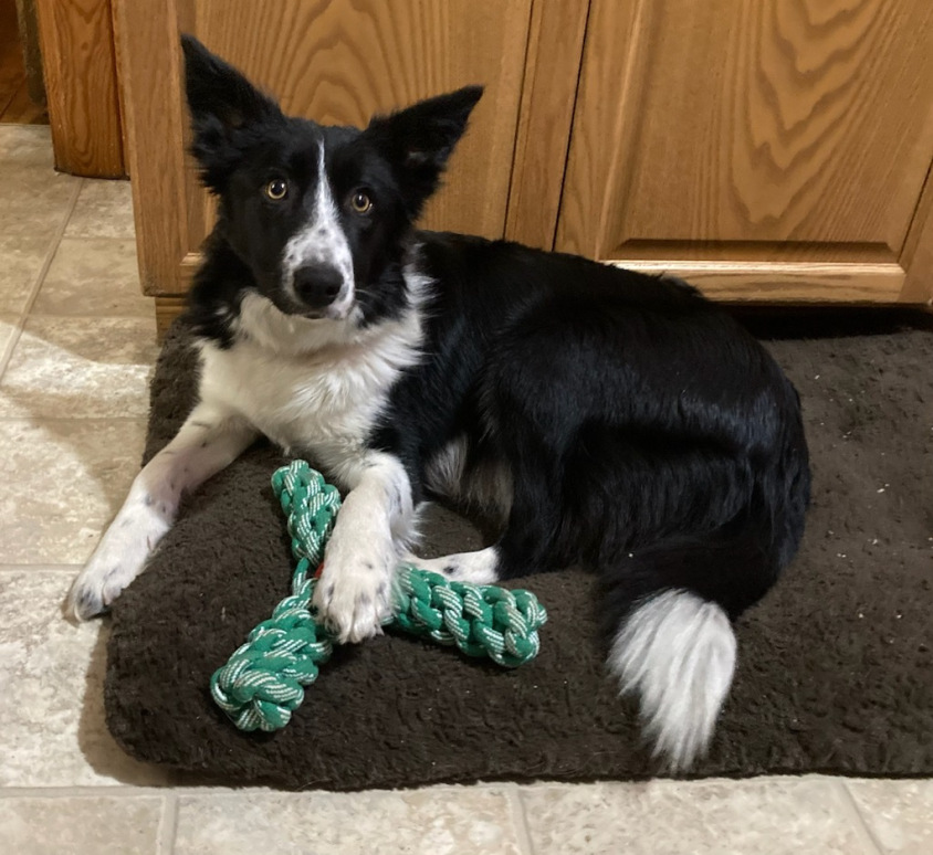 Ellie was bred with Copper in November and a litter is expected to be born in late Januarry. Ellie is a beautiful black and white border collie who lives with us - She is our son's pet. She absolutely loves to play fetch with a stick, frisbee or ball. She has a real zest for life and wants to go with us wherever we go outside. When we go to the door, she is right there to go out with us as well. Her pupppies with Copper are expected to be curlier than her and will be expecterd to be low/non-shedding. They will be F1 Border Doodles (Some call them Bordoodles) and are expected to be 20-30 lbs at one year old. Puppies from these two are expected to be mainly black or black and white with possible small brown patches on face or feet.